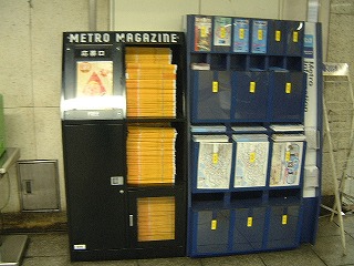 フリーペーパーの棚。