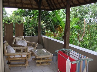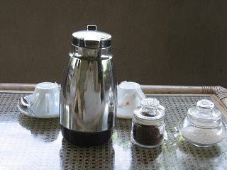 朝のティーセット。 お湯のポットと紅茶のティーバック、それにBali Kopiとお砂糖。 |
