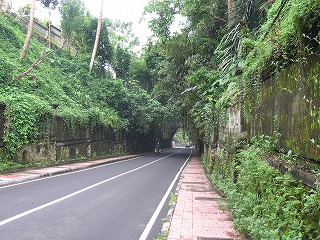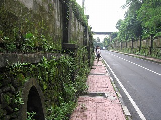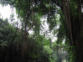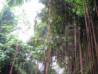 木の根っこ?が長〜くたれてきている。 不思議な光景。 |