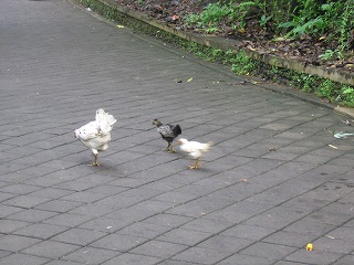 ちょっとリッチなホテル『Ibah』の横からわき道にそれていく・・・ 鶏親子もおさんぽ中。 |