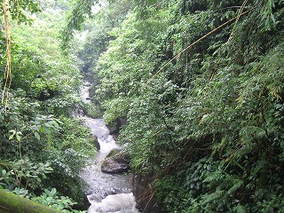 連日の雨で水かさが増していた。 |