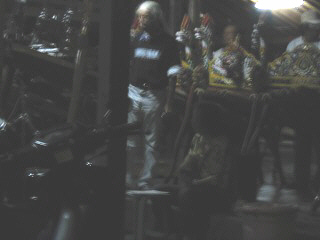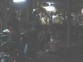 Bapak Suwentraのお家の庭に練習場がある。 真っ暗ななかに蛍光灯だけ。 素朴な、でも力強い、 そして不思議な音色が闇に響く・・・ |