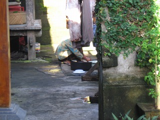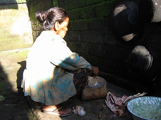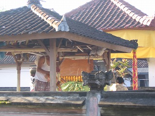 どこからかガムラン(音楽)が流れてきて 表もひとの声でけっこう騒がしい・・・ 家の前には朝だけ営業のお店(これもワルンなんだろうか?)が 出ていた |