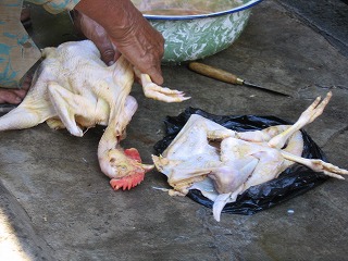 おっ ニワトリをさばいているのだった・・・ |