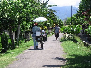 たのしそうな音楽をならして アイスクリーム売りのおじちゃんがいく。 |