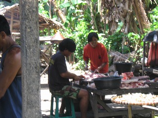 お肉屋さん?作業中。 |