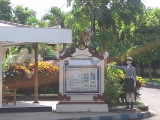 市場を出たところにPOLSI(交番)。 何を指さしてるんだろ?この婦警さん・・・ なんてやってたら道に迷ってるひとだと思われたのか おまわりさんに「教えてあげるからおいで〜」という調子で 手招きされた・・・ ぃぇ大丈夫です・・・すみません(苦笑)。 |