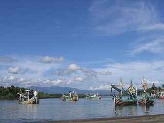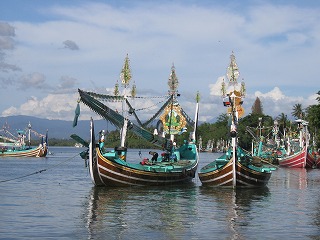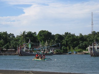 ヌガラの海。 ちょっと変わった形の美しい船が浮かんでいた。 |