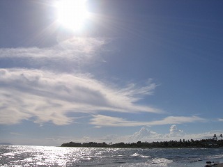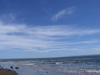 ビーチにあるレストランでビールを1杯。 きれいな海、空、太陽・・・ 最高の気分♪ のハズなのに この素敵な時間がもう長くは続かないことを想って 少しかなしくなっていた・・・ そしたらBapak Suwentraに 「帰りたくない、でしょ? かなしいカオになっている」 なんて言われちゃった。 Bapakはなんでもお見通しだね・・・ |