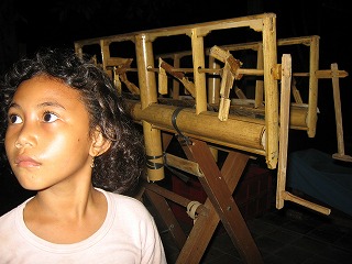 ワークショップの時間があってJEGOG演奏体験をしたり みんなで踊ったりして夜は更けていく・・・ そうしてコンサートは終了。 ツアーのお客さんたちが帰っていき・・・ メンバーのみんなの顔がいつもの顔に戻る。 お片づけ。 なぜか気がつけば座布団を片付けていたり・・・(笑) JEGOGを練習場に戻すとメンバーは各々バイクで帰っていった。 相変わらず撤収ははやい(笑)。 しずかになった庭でお弁当を食べる。 Bapak Suwentraはちょっと用事があると出かけていった。 この後は・・・ ヌガラ最後の夜にいろいろ想う・・・ |